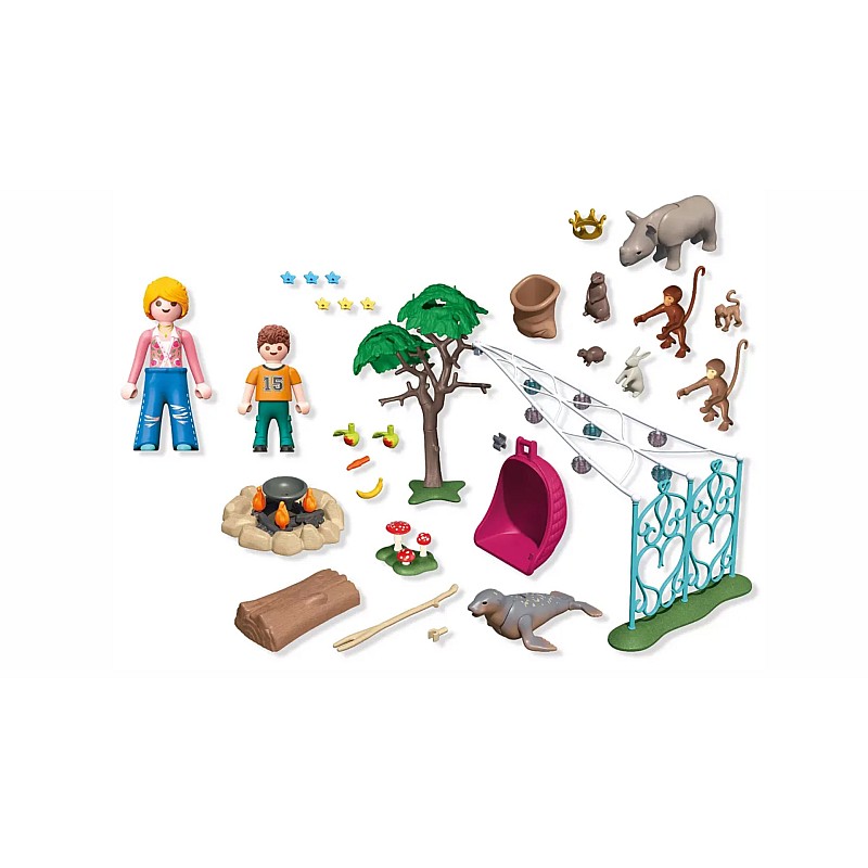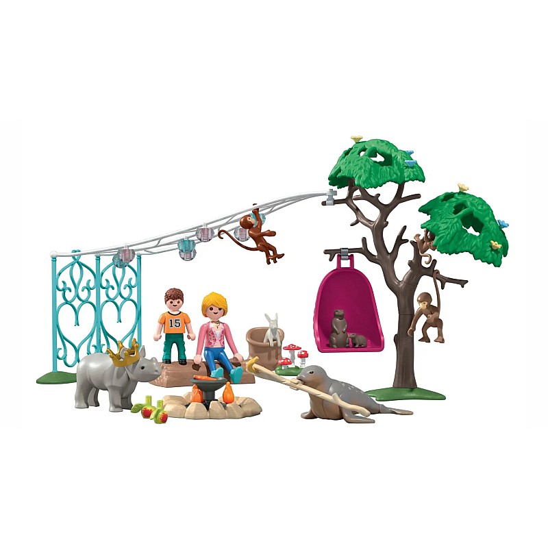 Cu coroana de aniversare din țesătură pe care o pot împărți și scaunele confortabile în jurul focului, fiecare detaliu face această petrecere și mai magică. Acest set PLAYMOBIL, plin de bucurie, include animale fermecătoare, accesorii festive și tot ce este necesar pentru aniversări pline de imaginație, zi și noapte!