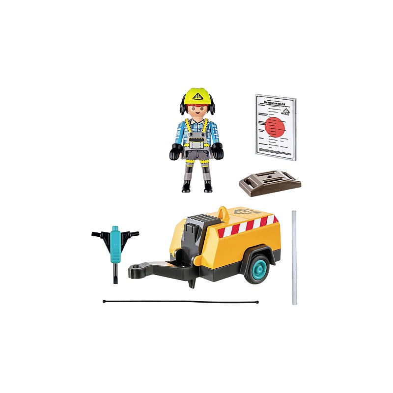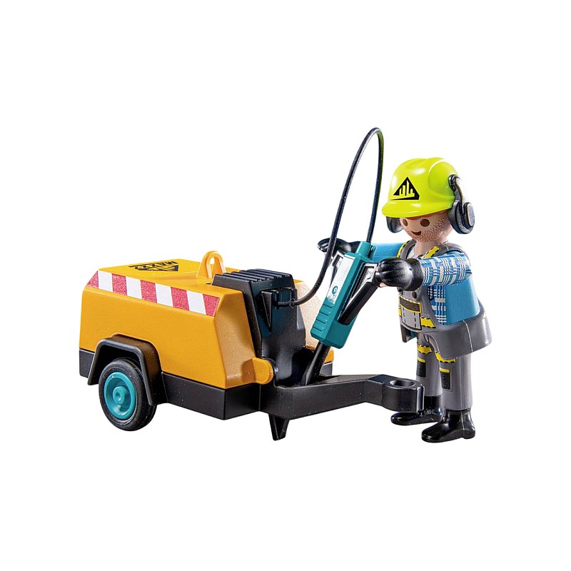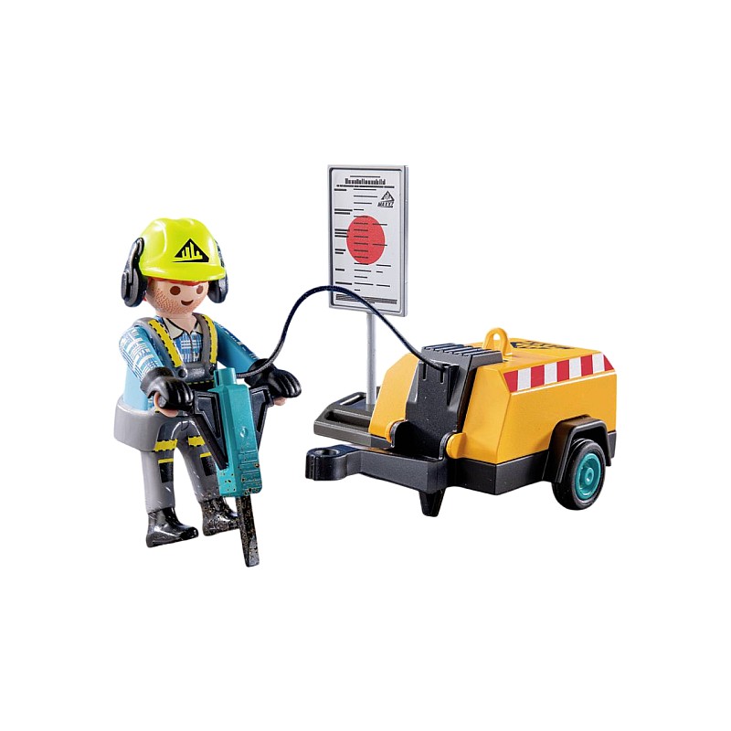 Pregătește-te pentru o muncă grea! PLAYMOBIL Action Heroes Worker with Jackhammer este pregătit pentru sarcini dificile de construcție.
