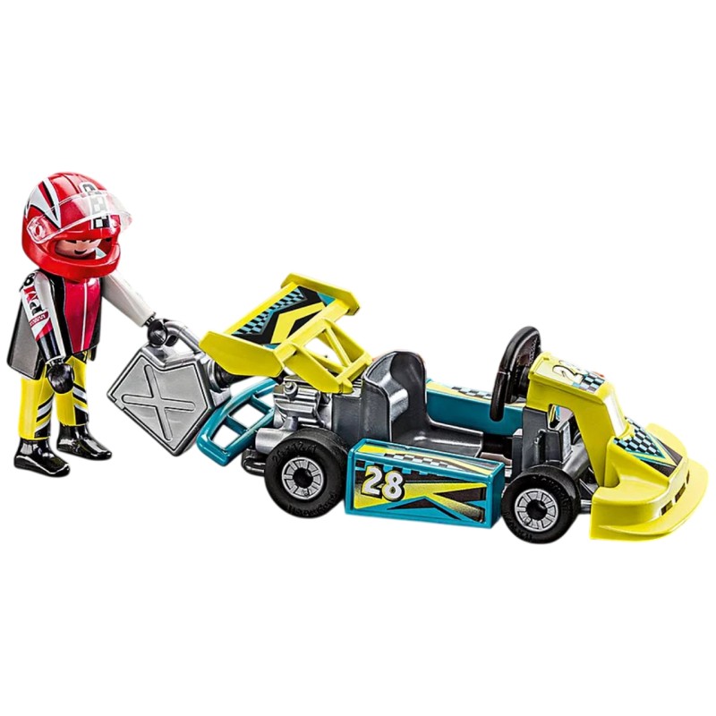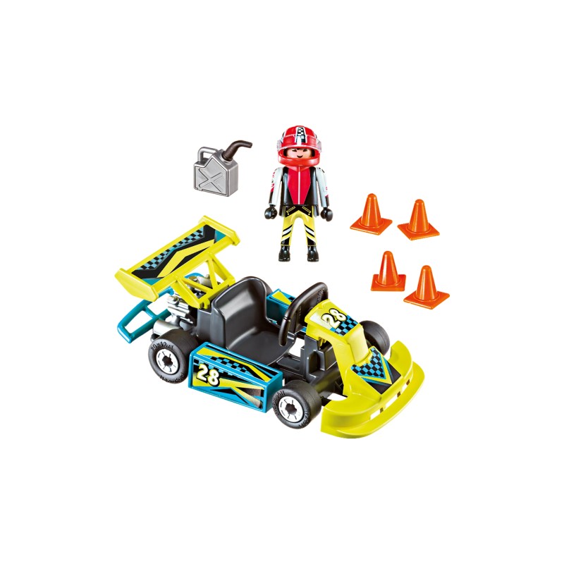 Dispunând de o figură de pilot profesionist și de kartul său super cool, ca să nu mai vorbim de o mulțime de accesorii, cum ar fi conuri de trafic și o canistră de ulei pentru jocul de imitație.