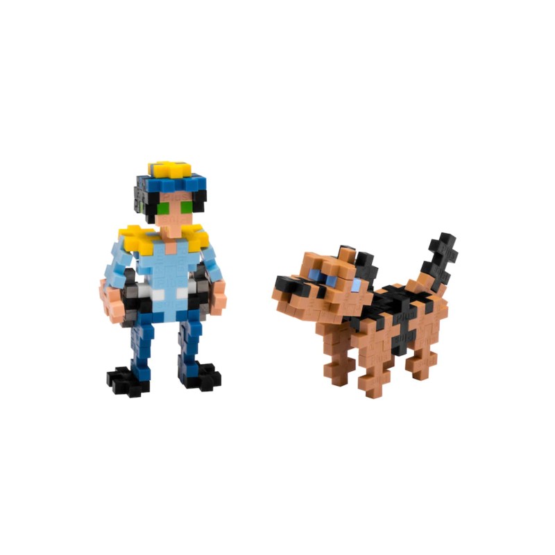 Acest tub Plus-Plus conține 100 de piese cu tot ce aveți nevoie pentru a crea un ofițer de poliție și un câine.