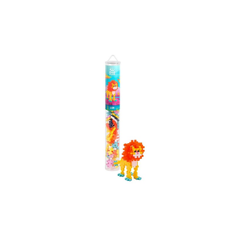 Blocuri Plus-Plus distractive într-un set cu tema Lion, care conține 100 de blocuri și o instrucțiune de construcție pentru inspirație.