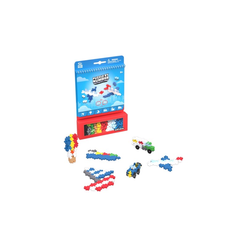 Scufundați-vă în lumea creativității cu pad-ul de activități Plus-Plus Transportation.