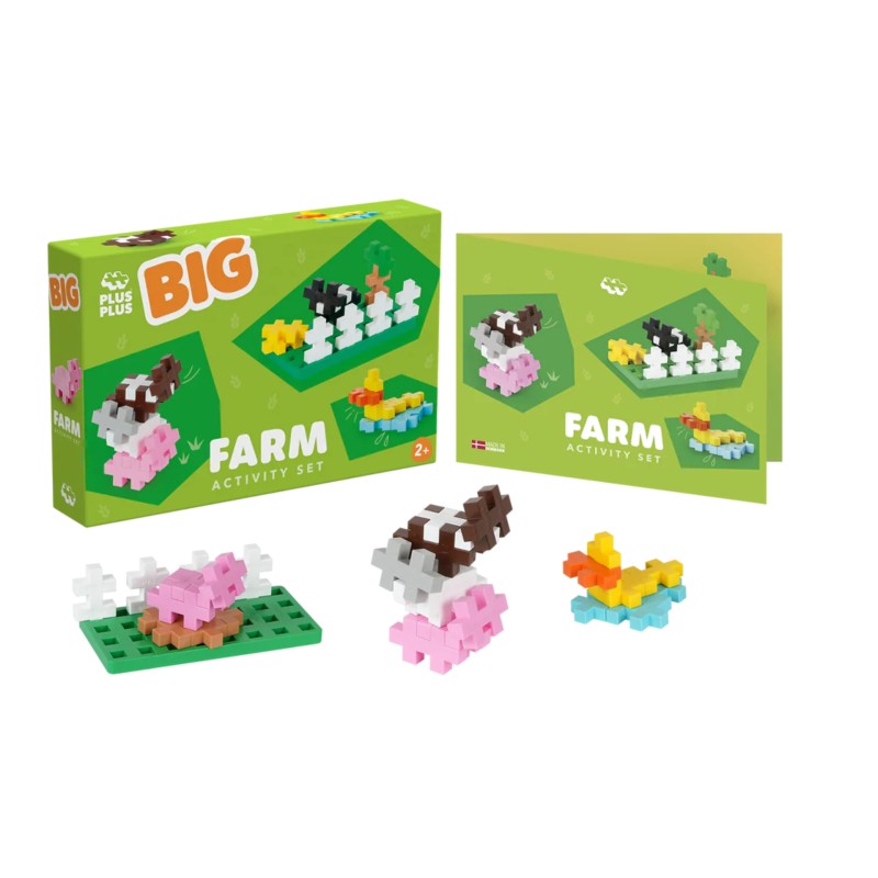 Setul conține 40 de piese Plus-Plus BIG și o bază de construcție, perfecte pentru a construi animale, garduri sau alte detalii care aparțin fermei.
