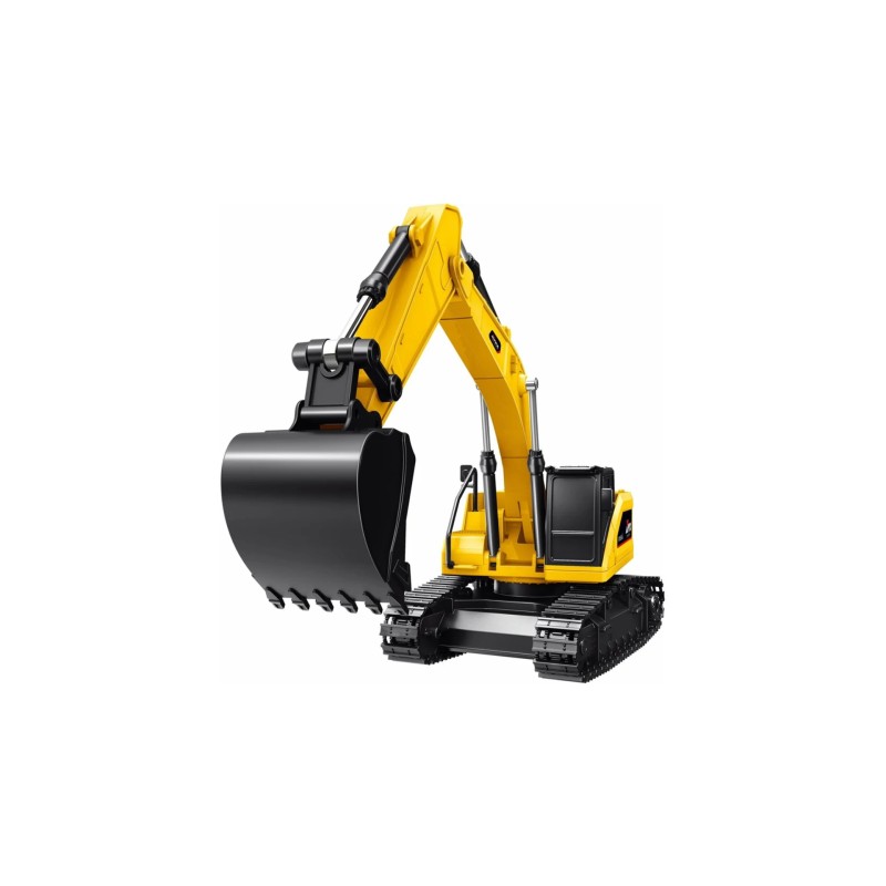 Excavatorul rc are șenile Caterpillar reale, astfel încât se poate deplasa pe teren noroios, și poate fi controlat pentru a merge înainte, înapoi și pentru a vira la stânga și la dreapta.