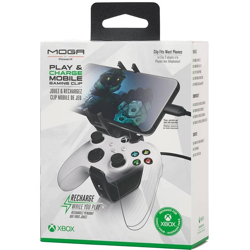 Joacă mai mult timp cu clema de gaming MOGA Play & Charge pentru controllerele Xbox Series X|S și Xbox One, care dispune de un Power Bank/Battery Boost integrat pentru a-ți menține dispozitivul încărcat în timp ce te joci.