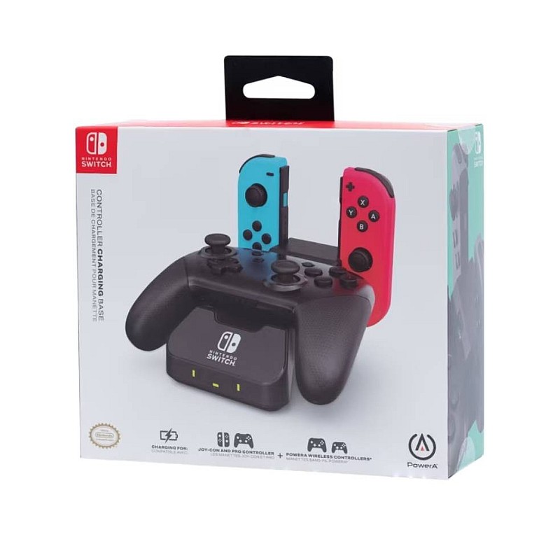 Păstrează-ți controllerele Joy-Con, Pro Controller pentru Nintendo Switch și PowerA Wireless Controllers pentru Nintendo Switch alimentate cu energie cu această stație de încărcare fiabilă și cu profil redus.