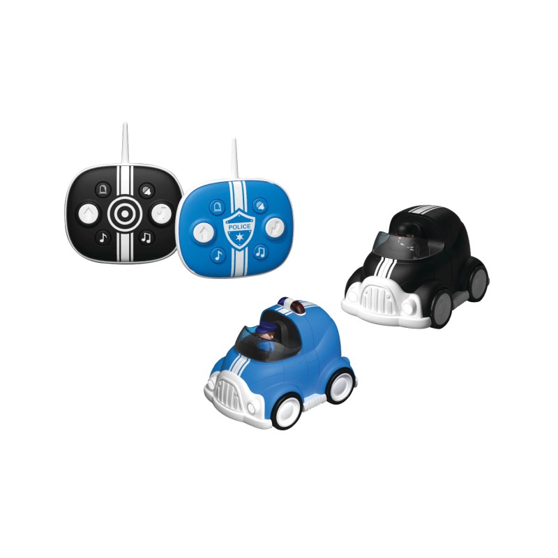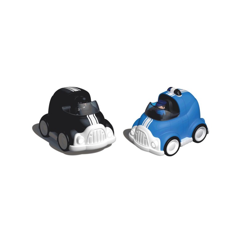Acest set de curse include o mașină de poliție și o mașină de evadare pentru curse cap la cap captivante, cu un aer de polițiști și tâlhari.