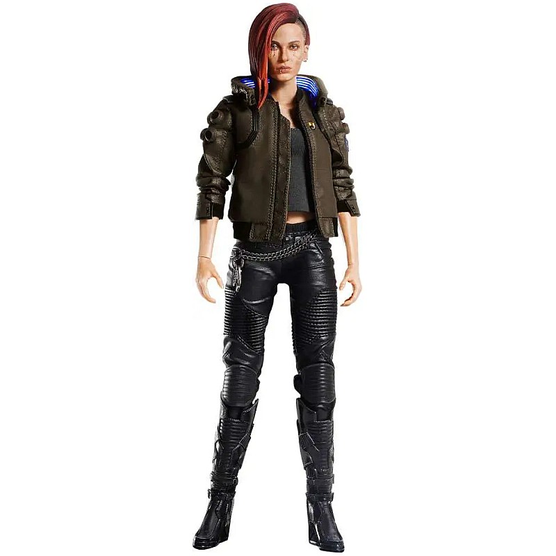 Reproduce fidel trăsăturile, îmbrăcămintea și accesoriile cyberpunk. Include o geacă iluminată cu LED-uri (pentru colier și guler), ce reproduce look-ul distinctiv din joc.