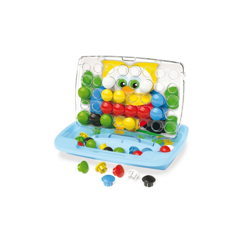 Tabla de joc este robustă, având perforații unde copiii pot introduce piesele pentru a crea diferite modele și imagini. Dimensiunea tablei este potrivită pentru mâinile mici ale copiilor.