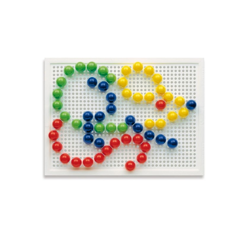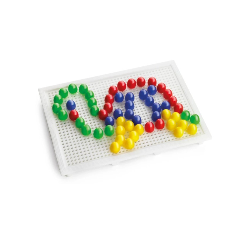 Tabla de joc este robustă și ușor de folosit, având perforații unde copiii pot introduce piesele pentru a crea diverse modele și imagini.