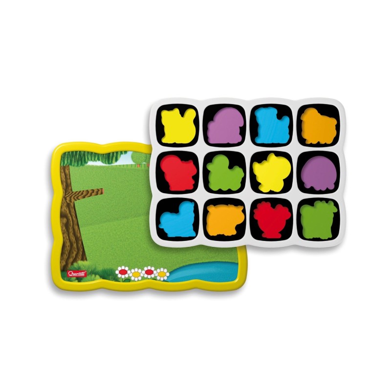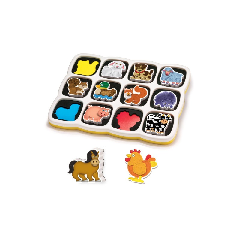 Pe una din fetele plansei sunt 12 contururi de animale, a caror forma trebuie recunoscuta, iar magnetii potriviti trebuie fixati pe conturul corespunzator.