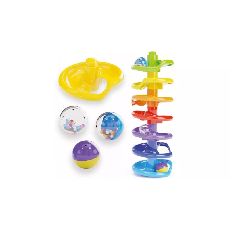 O pistă cu bile pentru cei mai mici, potrivită pentru copiii de la un an. Fiecare nivel este pictat într-o culoare diferită, permițând copiilor să exerseze recunoașterea culorilor.