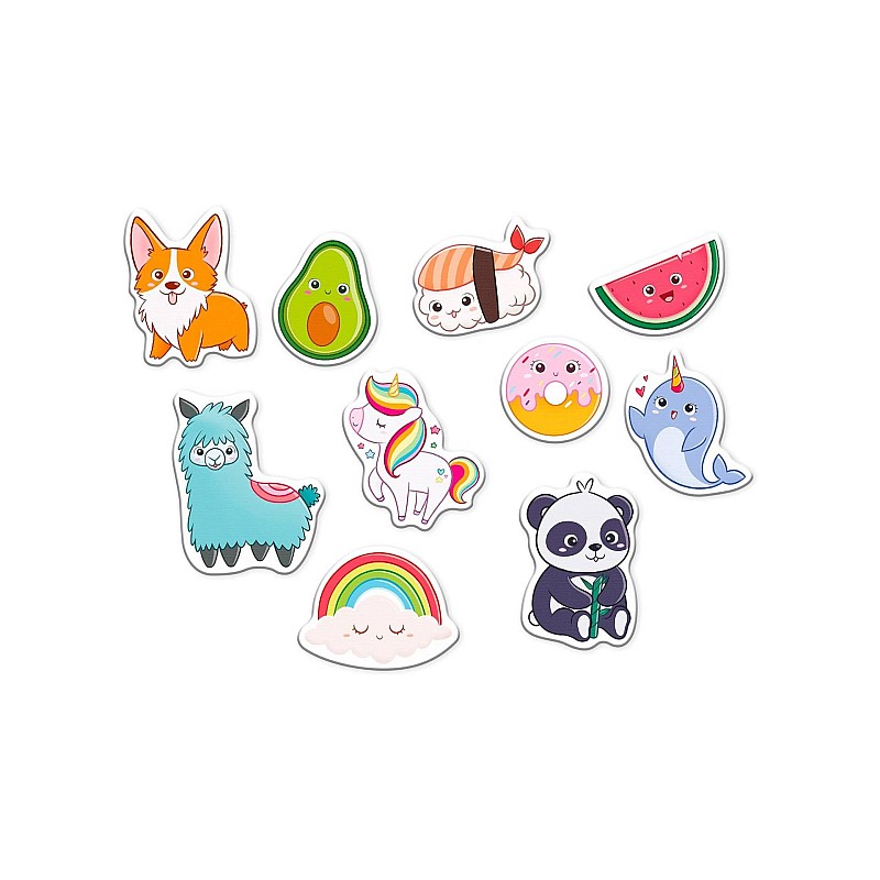 Aceste stickere pot fi lipite pe orice suprafață non‑magnetică (hârtie, carton, plastic), oferind activități suplimentare de personalizare.