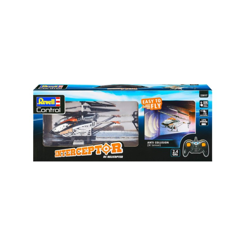 Datorită senzorului anti-coliziune, accidentele de zbor sunt reduse semnificativ la elicopterul RC Interceptor.