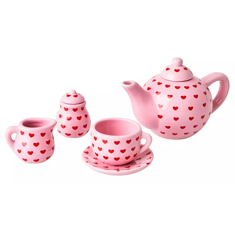 Setul conține ceainic cu capac, ceașcă și farfurioară, zaharniță și creieră.