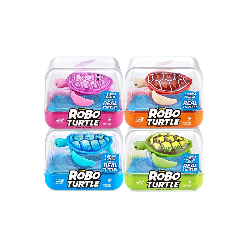 Există 4 țestoase Robo colorate din care poți alege, colecționează-le pe toate pentru a-ți completa acvariul Robo! Aceste țestoase Robo sunt mai mult decât vii - sunt Robo Alive.