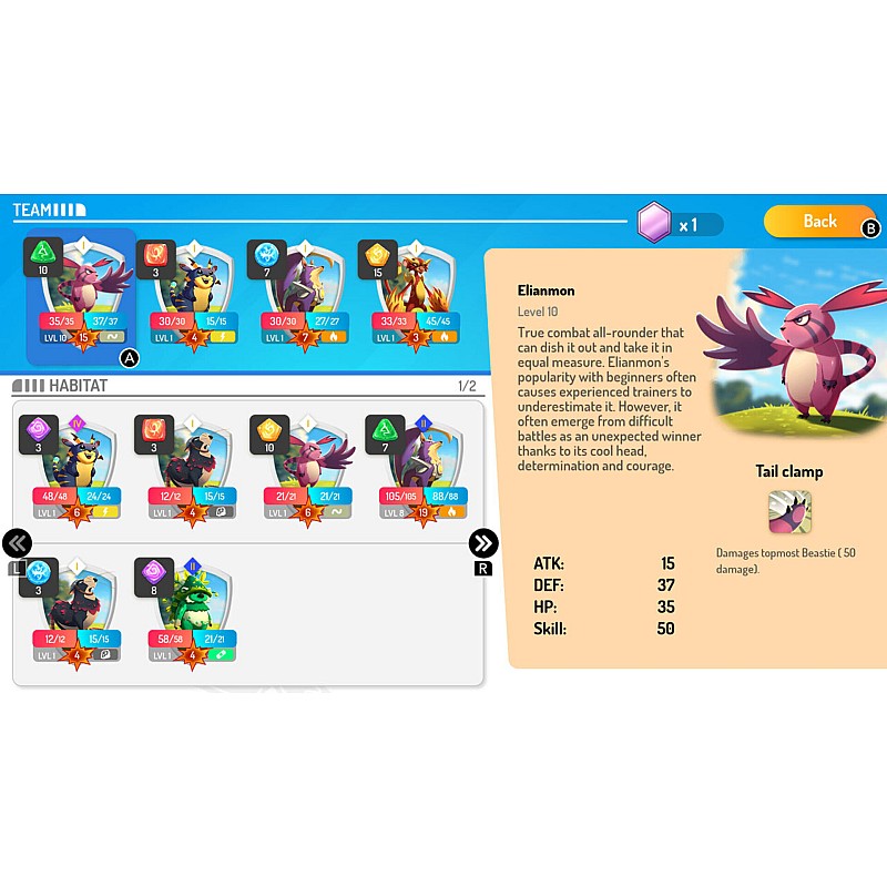 - Puteți îmbunătăți fiecare Beastie în parte, investind în sănătate, apărare, putere și abilități speciale,tu decizi cum să-ți configurezi echipa în funcție de strategia ta.