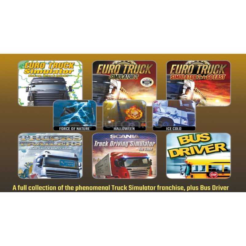 O colecție uimitoare de simulări de conducere a camioanelor de la SCS într-un singur pachet. De la originalul Euro Truck Simulator la Euro Truck Simulator 2 cu colecția sa suplimentară de teritorii din Europa de Est și noi vopsele.