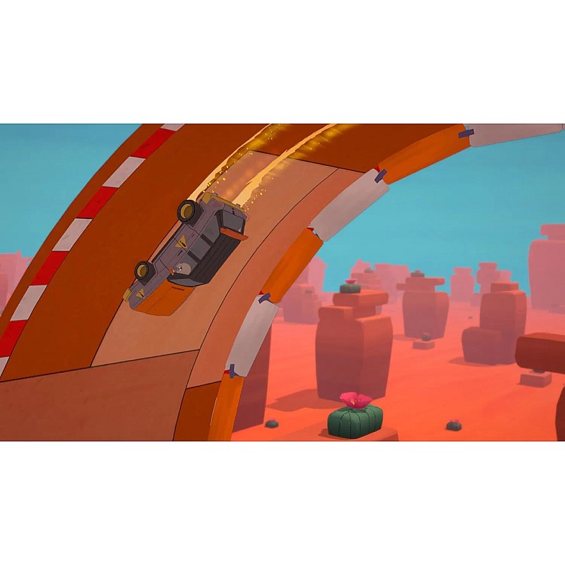 Lucrează împreună sau unul împotriva celuilalt - pentru a construi rapid piste folosind o gamă largă de piese ridicole, inclusiv bucle, balansoare, tirbușoane și chiar treceri de tren.