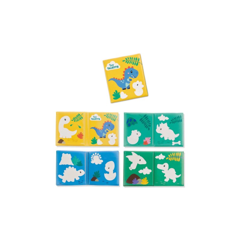 Această carte impermeabilă are 8 pagini pline de dinozauri care prind viață atunci când copilul tău le colorează cu apă.