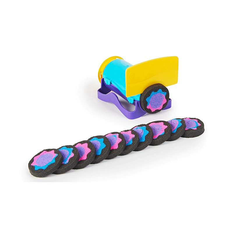 Sunt atât de multe moduri de a te juca cu setul Slice N` Surprise. Umpleți cilindrul și scoateți-i miezul, stratificați nisipul, striviți-l, sculptați-l, tăiați-l și multe altele. Dezvăluirea surprizelor tale este atât de distractivă!