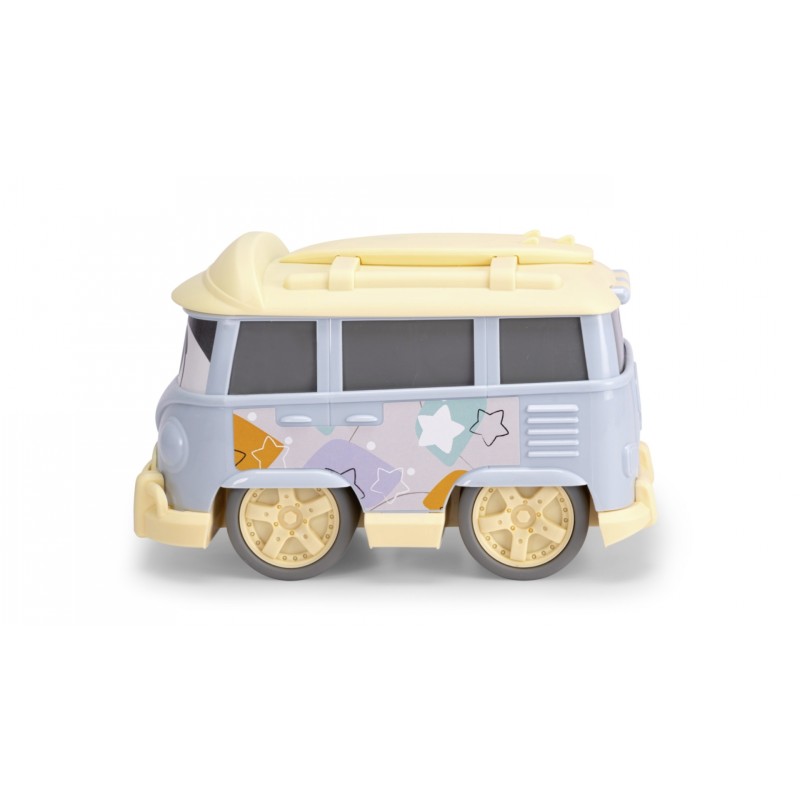 O mică comoară pe 4 roți Jucăria drăguță ascunde o surpriză minunată: acoperișul camperului se poate deschide, astfel încât copiii să poată depozita ușor micile lor comori în mașină.