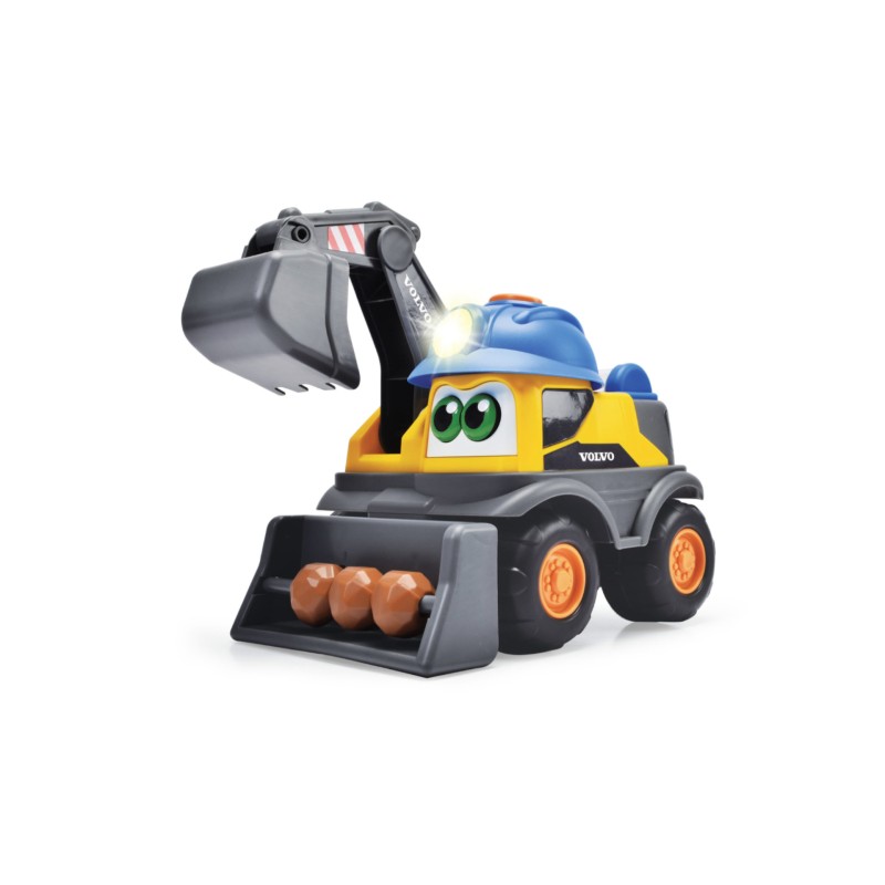 Excavatorul de jucărie Volvo licențiat pentru copii oferă numeroase oportunități de mișcare, joacă și descoperire!