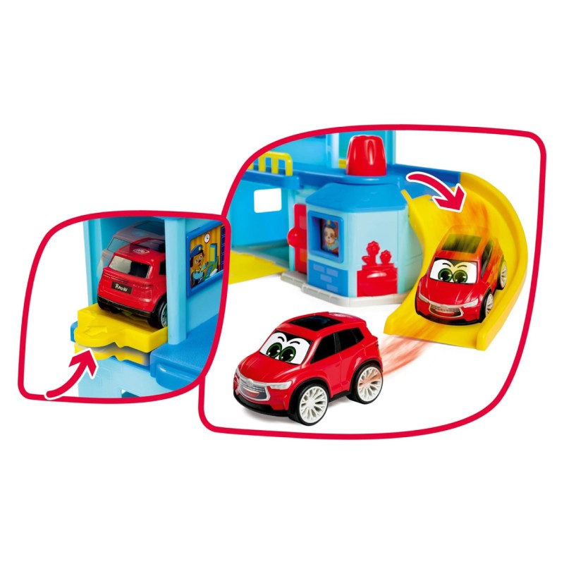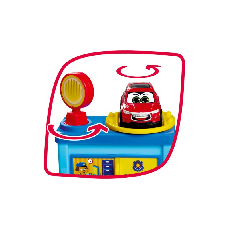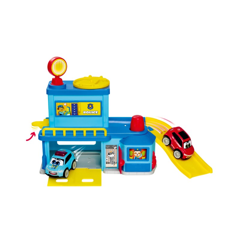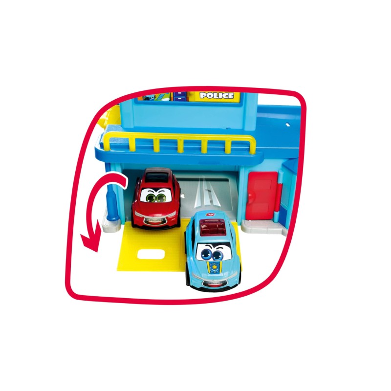 Setul ABC - Post de poliție vine cu două mașini de poliție cu rampă și funcții.