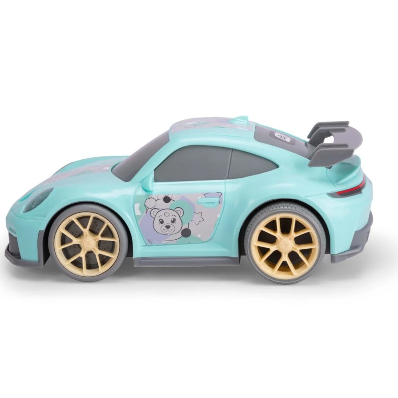 Această mică replică a unui Porsche 911 GT3, este echipată cu roți de tip freewheel, permițând celor mici să o împingă și să o ruleze cu ușurință.