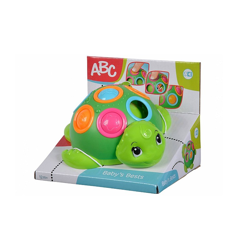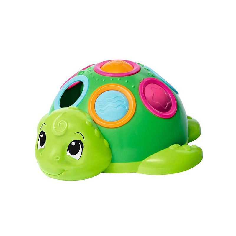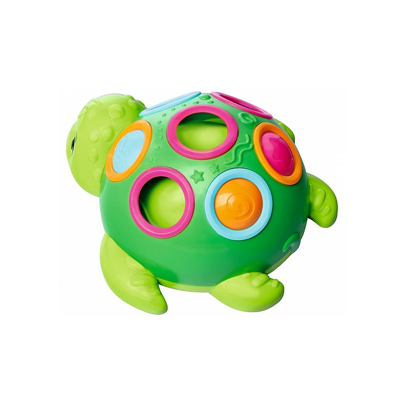 Stimulează curiozitatea și sprijină dezvoltarea în primii ani de viață. Broasca țestoasă are elemente colorate care pot să sară sau să alunece prin găuri.
