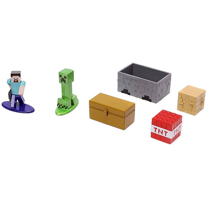 Construiește, explorează și supraviețuiește. Personalizează-ți propria Overworld cu Jada Toys Minecraft NanoScene. Setul include figurinele Steve si Creeper.