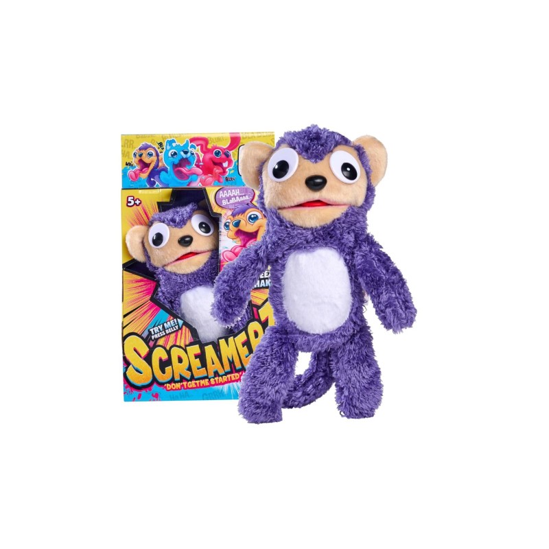Dacă îi apeși ușor burtica în timp ce te joci cu el, va scoate un țipăt. Necesita 2 baterii AAA (incluse).