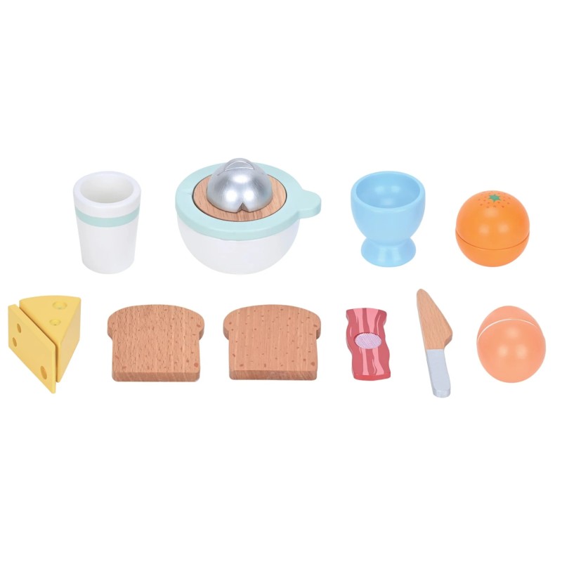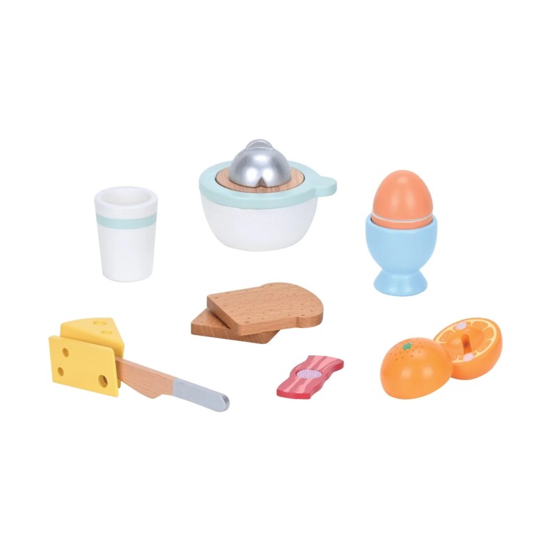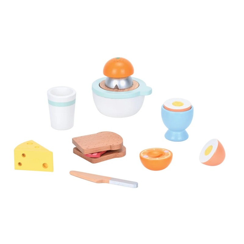 Small Wood Breakfast Play Set with Juicer (L40295) este un set de jucării educativ, conceput pentru copii, care simulează pregătirea unui mic dejun delicios.