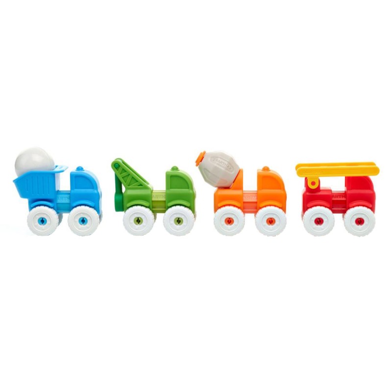 Se pot construi 4 mașini utilitare, setul conține 13 piese cu îmbinare magnetică.
