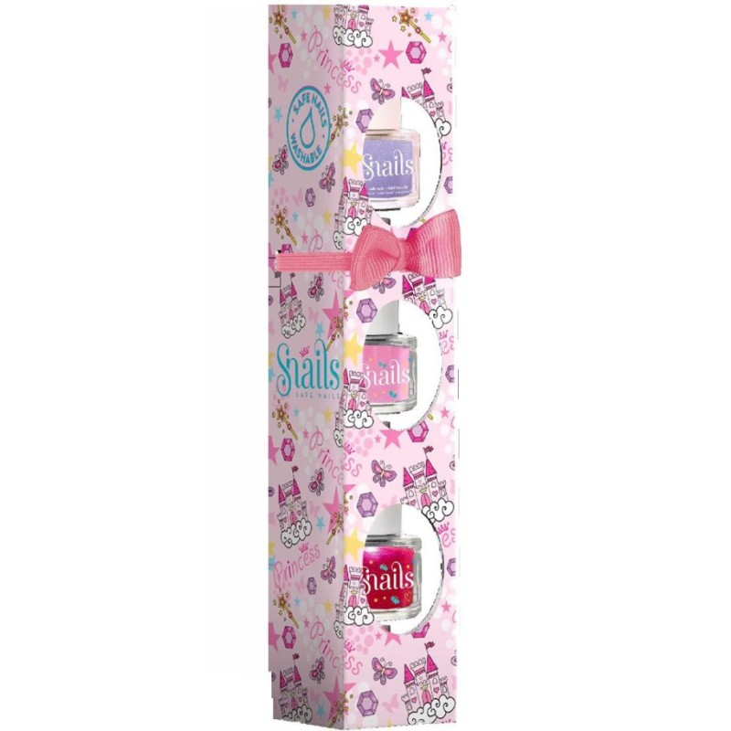 Lacurile de unghii Fine Snails sunt vândute în pachete de 3 în diferite culori: Roz, Violet cu sclipici, Roșu.