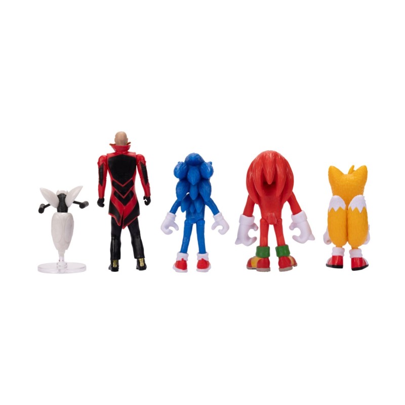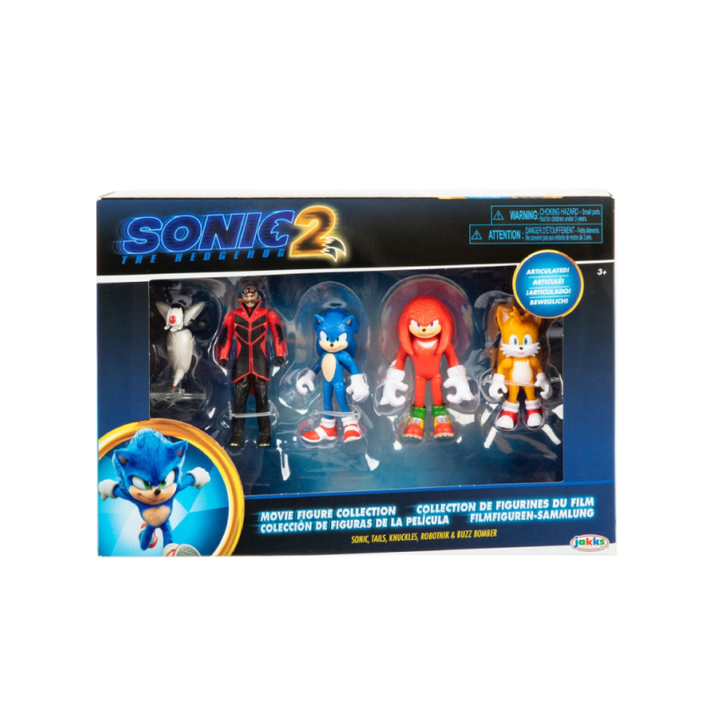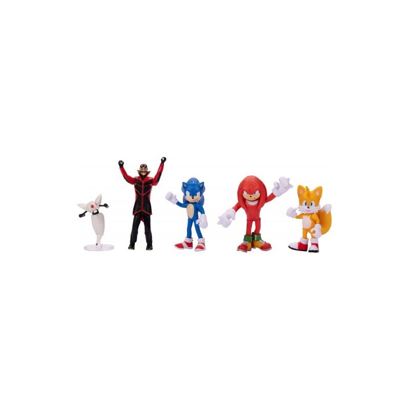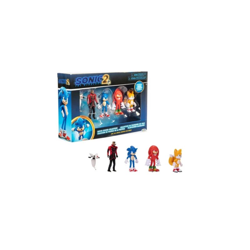 Set compus din 5 figurine articulate, reprezentari ale personajelor Sonic, Robotnik, Buzz Bomber, Knuckles si Tails. Face parte din seria Sonic The Hedgehog 2 (Movie).