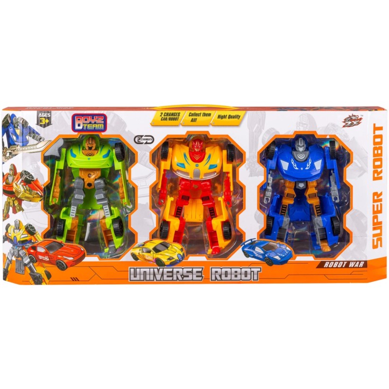 Imaginează-ți seturi cu mai multe vehicule interesante care nu numai că se pot rostogoli pe podea, dar se pot transforma și în roboți puternici, exact asta primești cu setul asortat Speed Car Transrobot Car.