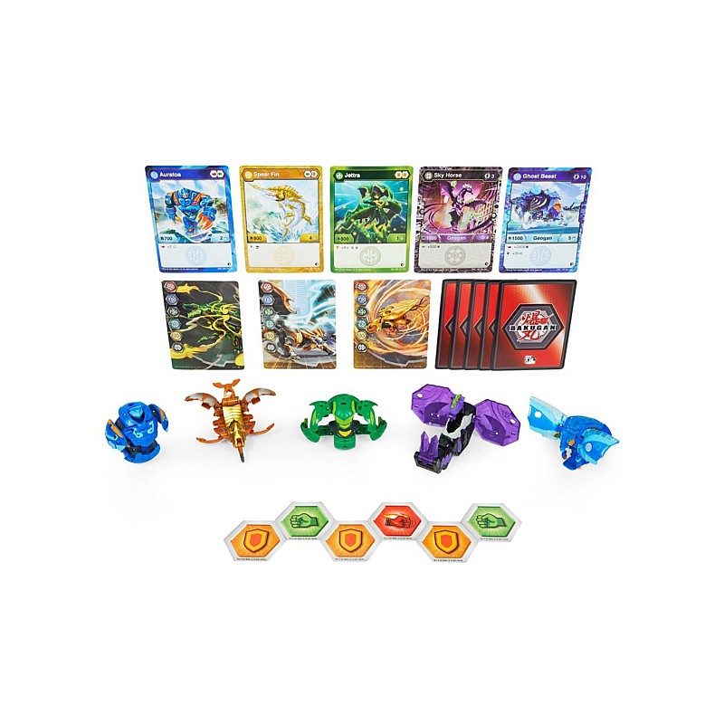 Extinde-ți colecția Bakugan cu tot ce ai nevoie inclus în acest set epic, te poți lupta direct din cutie. Înfruntă-ți prietenii cu ajutorul cărților de caractere și abilități, optimizate pentru figurinele tale!