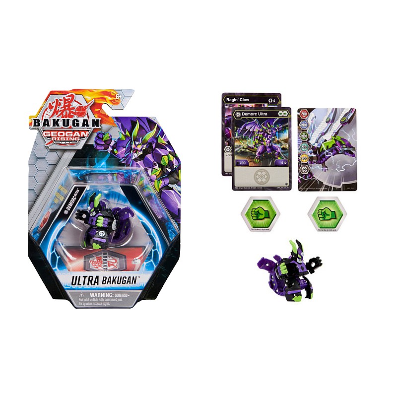 Include:1 figurină Bakugan Demorc Ultra, 2 carti de caractere, 1 carte de abilitate, 2 bakucore.