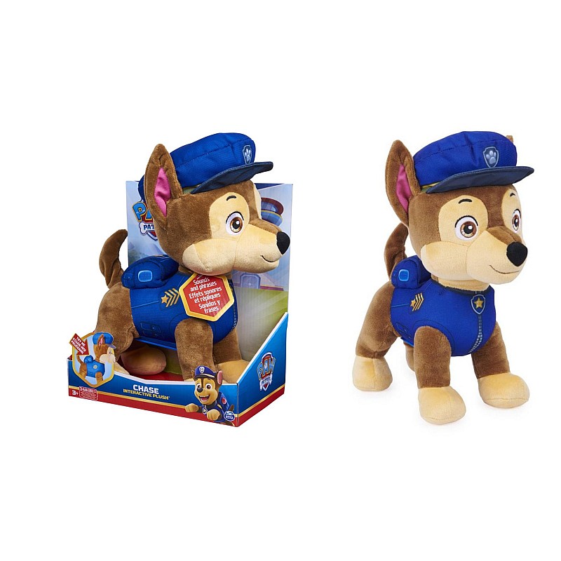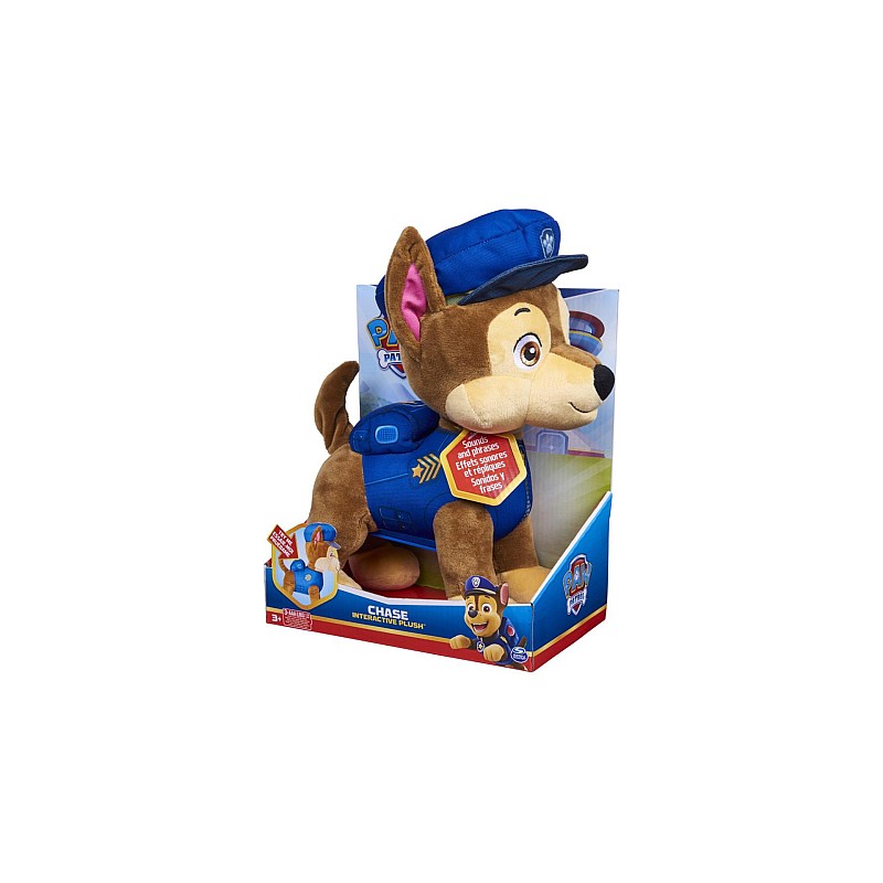 Apasă pe rucsacul lui Chase pentru a te bucura de o combinație de peste 20 de sunete, fraze în limba engleză, muzică și acțiune de clătinare a cozii care dau viață acestei jucării PAWsome PAW Patrol!