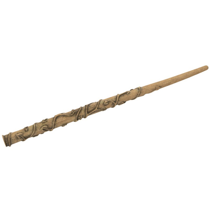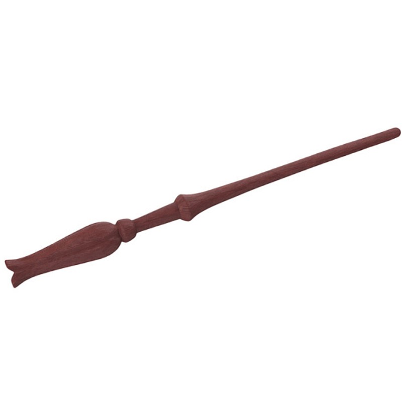 Ascunsă într-o cutie opacă se află o baghetă lungă de 30 cm, cu o bază din metal auriu cu emblema Hogwarts și un accesoriu metalic unic pentru acest personaj.