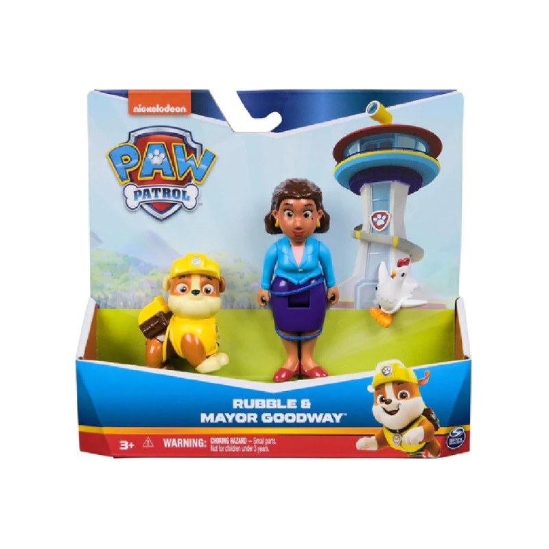 Setul include două figurine: Mayor Goodway, primărița orașului Adventure Bay, și Rubble, unul dintre cățelușii eroi din PawPatrol.