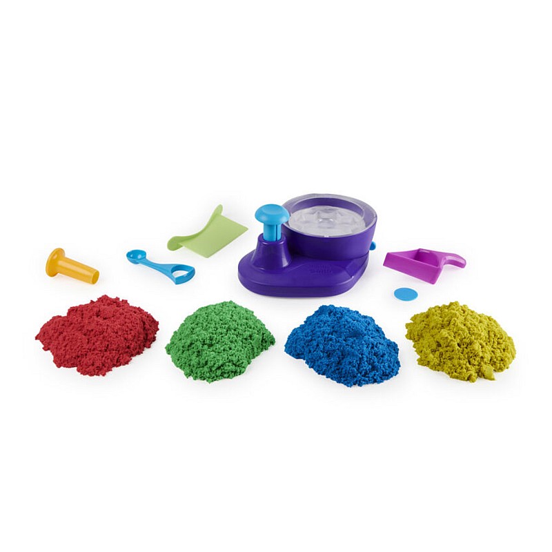 Cu 4 matrițe de nisip cinetic și unelte cu care să creați, transformați nisipul și personalizați-vă creațiile de nisip!