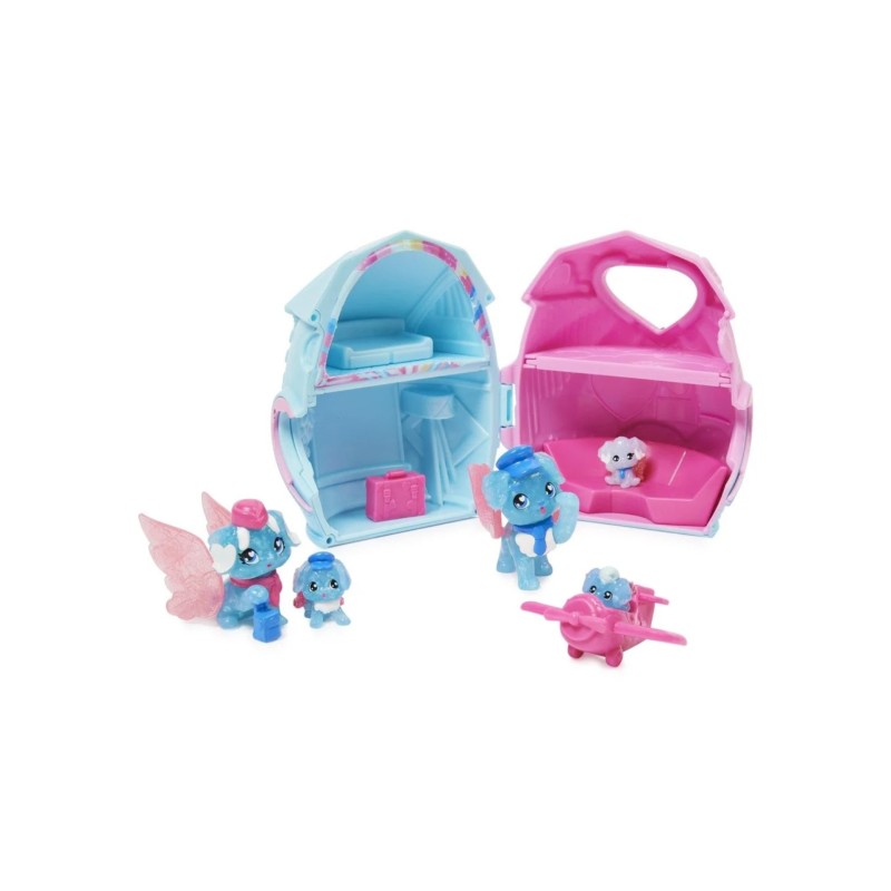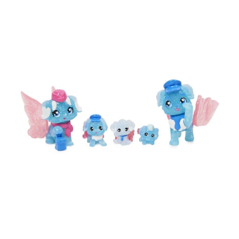 Fiecare pachet de familie este plin de surprize distractive, inclusiv un set de joaca cu o casa de oua, un ou mic Hatchimals cu unul, doi sau trei Bebelusi misteriosi, plus doi parinti Hatchimals, un Copil Mic, trei accesorii si multe altele.