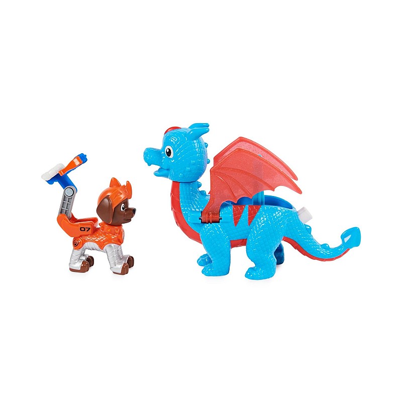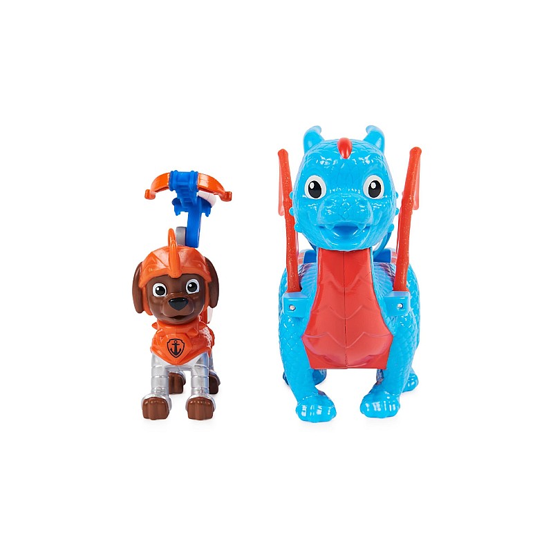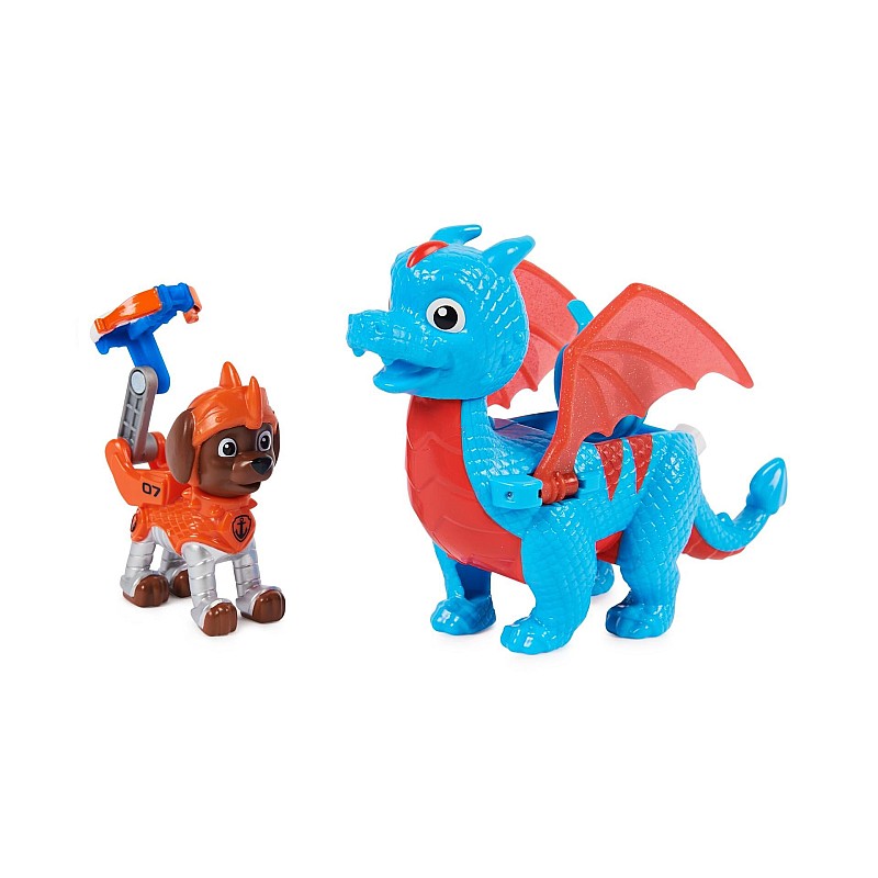 Acest set de figurine de acțiune include pe Zuma și pe prietenul său dragon de încredere Ruby. Purtând armura sa de Cavaler salvator, iubitul cățeluș al Patrulei PAW este gata să sară în acțiune.