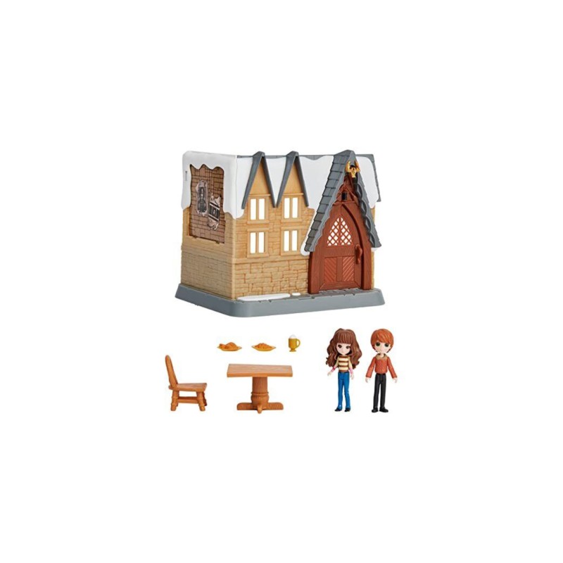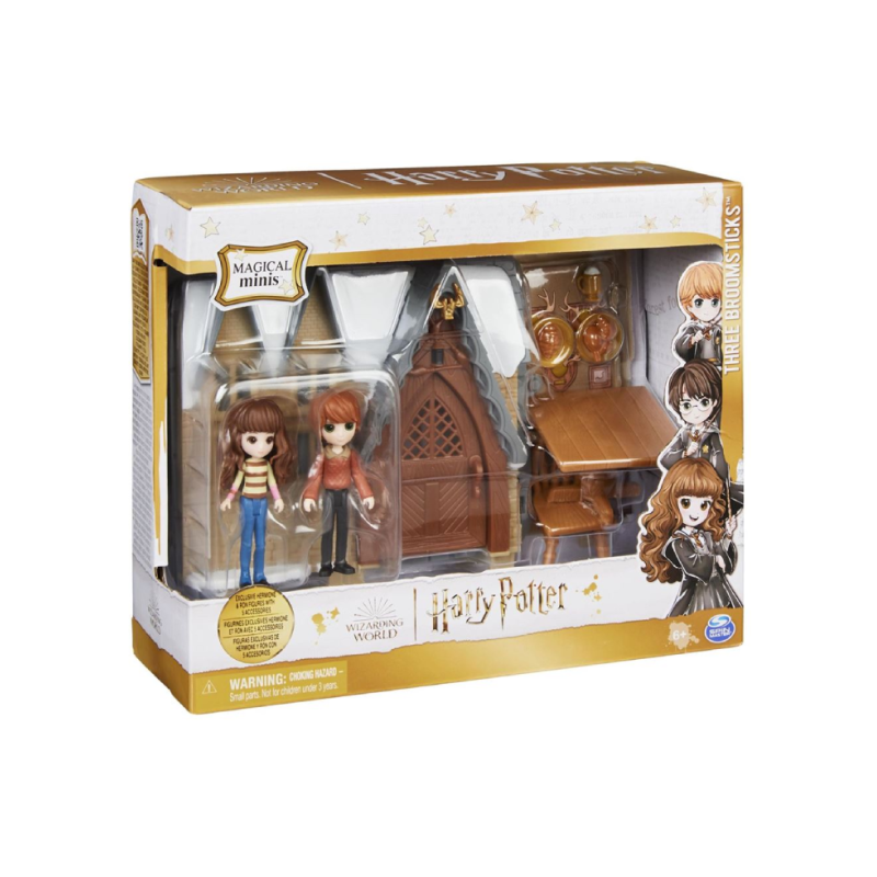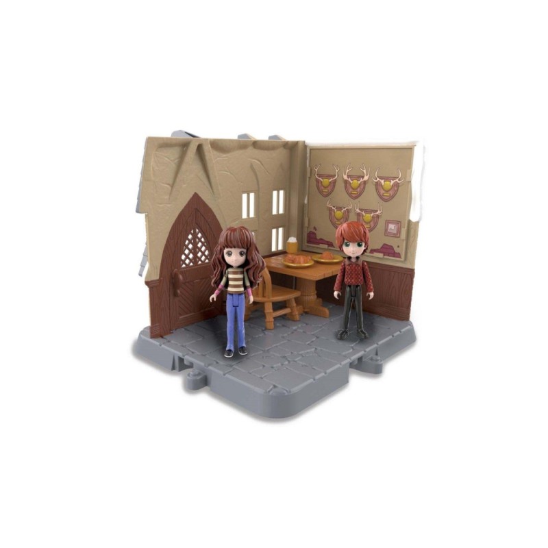 Cutie care include 2 figurine Magical Minis în ținute exclusive și 8 accesorii: o masă și scaune, scări și balcon, 2 Butterbeer, 2 farfurii cu mâncare de vrăjitor.