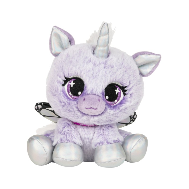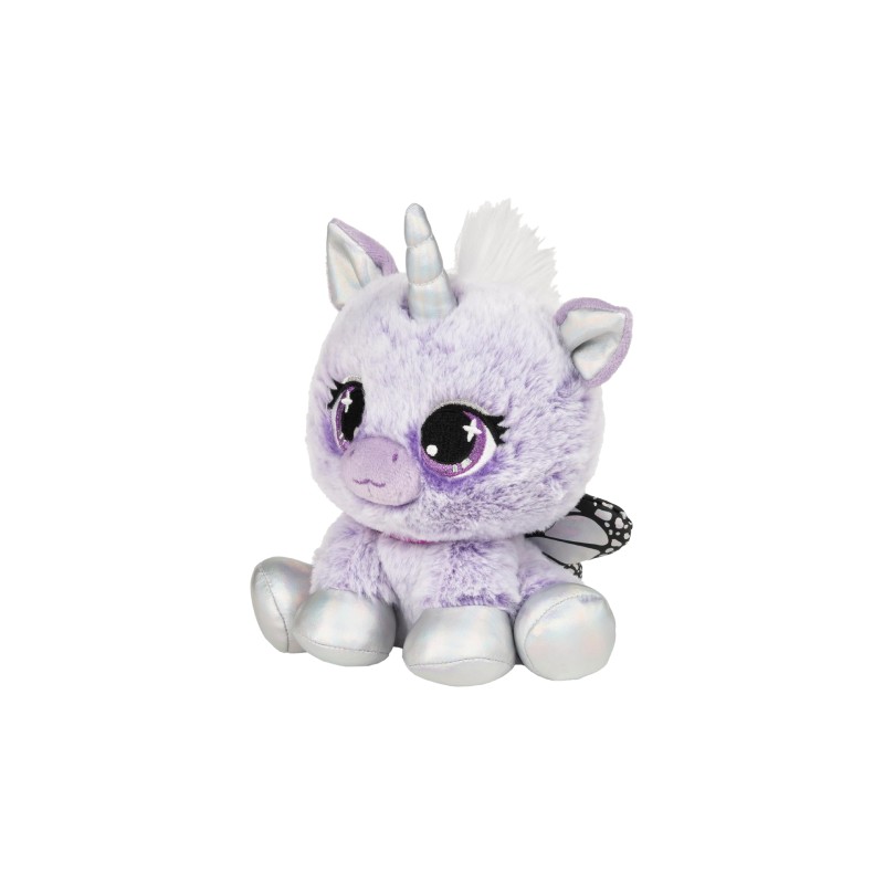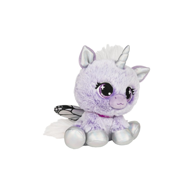 Acest unicorn maiestuos este acoperit cu pluș moale, care se asortează cu floarea ei preferată, liliacul.