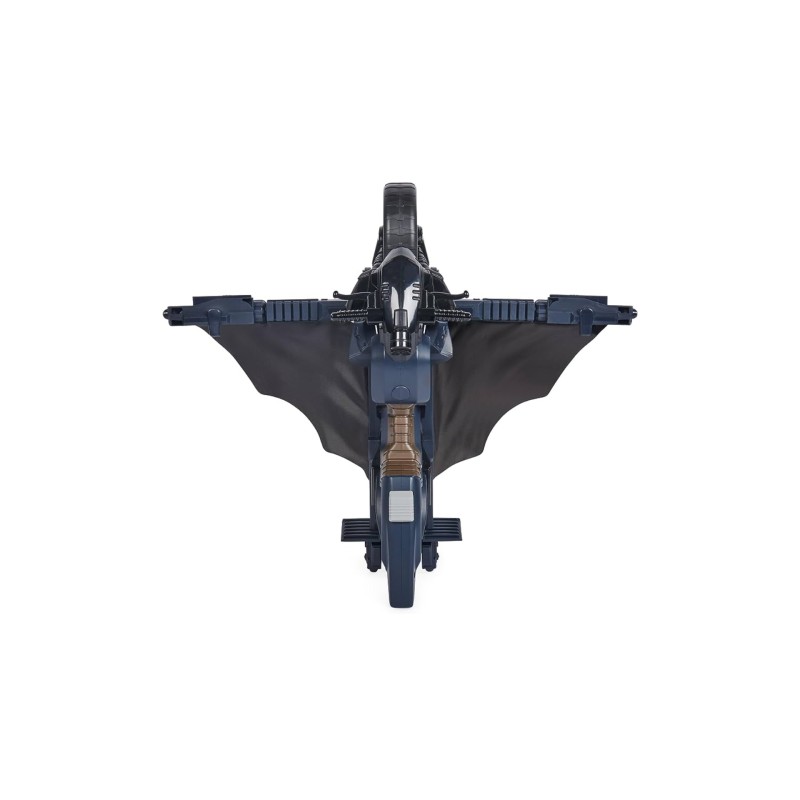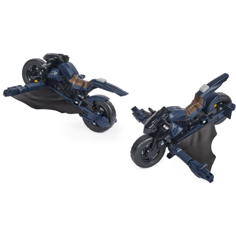 Așezați figurina pe Batcycle, apăsați butonul și priviți cum figurina se răstoarnă fără probleme, transformând Batcycle într-un Batglider pentru și mai multe aventuri pline de acțiune.
