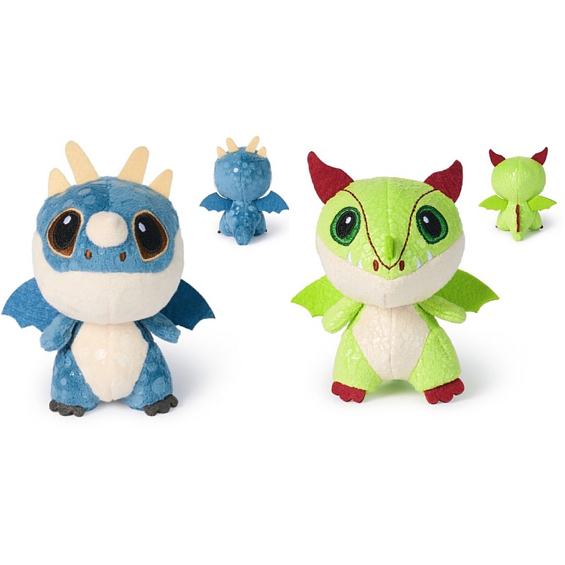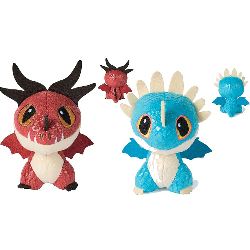 Fără dinți, Nadder mortal, Coșmarul monstruos, Gronckle și Teroarea teribili, fiecare adorabil animal de pluș dragon prezintă detalii fidele filmului, reunite într-un pluș moale cu solzi strălucitori, gheare și aripi din fetru și ochi brodați expresivi.