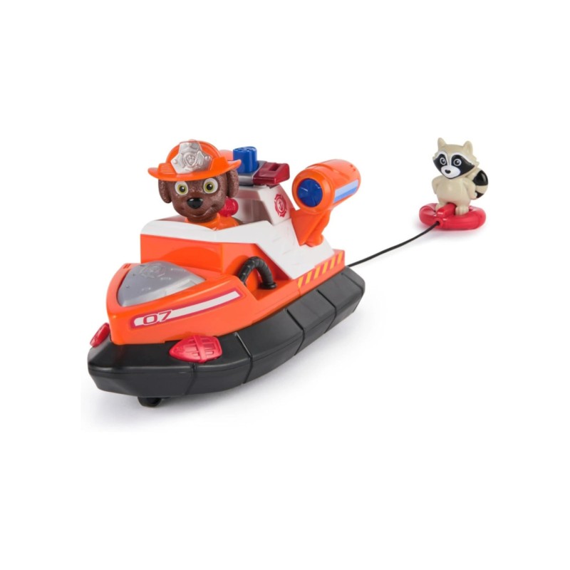Explorează aventuri eroice cu Zuma și barca sa de salvare, dotată cu un salvamar lansator atașat cu o sfoară, perfect pentru prietenul adorabil raton al lui Zuma în timp ce pornești la drum pentru următoarea ta aventură eroică!